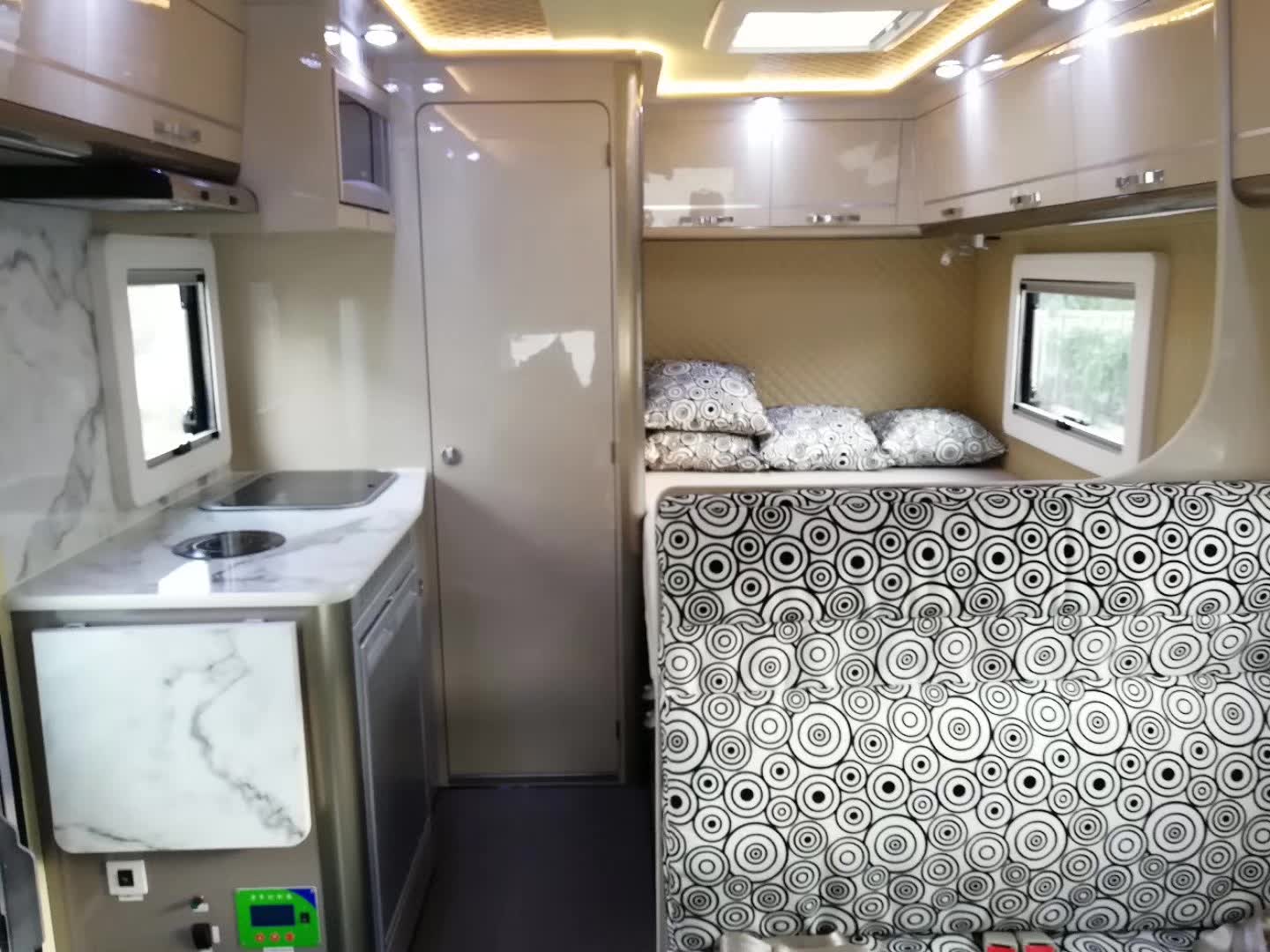 | 1.配備廚具,臥具,冰箱,液晶屏等旅居生活設(shè)施和娛樂設(shè)施.2.車廂頂部選裝天窗,衛(wèi)星天線時(shí)高度為3445mm,不選裝時(shí)整車高度為3220mm;3.ABS型號/生產(chǎn)廠家:A000 446 74 14/戴姆勒股份公司;4.發(fā)動(dòng)機(jī)凈功率:160kW;5.側(cè)防護(hù)和后下防護(hù)裝置材料為Q235,與車架螺栓連接,斷面尺寸(mm):120×80,離地高480mm;6.選裝絞盤,裝絞盤時(shí)整車長度為(mm):1300+3850+1885=7035,未裝時(shí)整車長度為(mm):1050+3850+1885=6785. |
