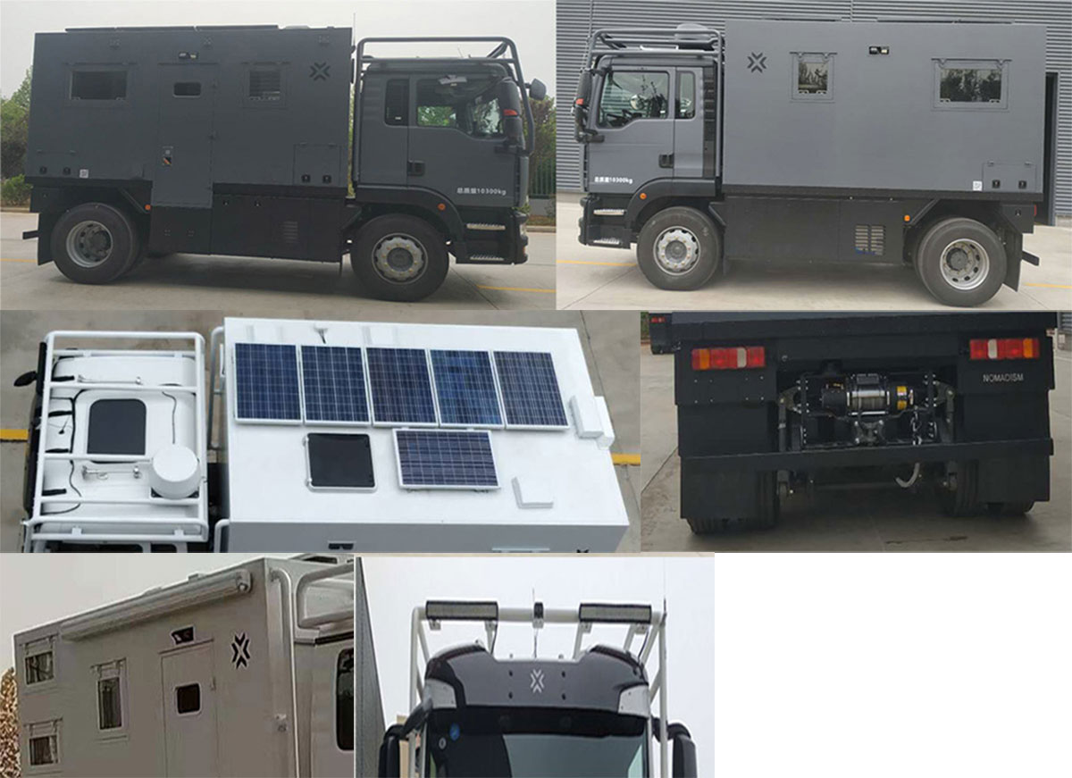 | 1、側防護為裙邊結構,材質為高強度鋁合金,后防護材質為鋼質,斷面尺寸(長×寬)mm:110×50,離地高度:440mm,連接方式均為螺栓連接;2、配備桌椅,廚具,睡具,衛(wèi)生設施等旅居生活設施;3、車輛選裝遮陽篷,選裝左右側窗戶數量及位置,選裝車廂門的位置,選裝絞盤安裝位置;選裝車頭燈具,僅限人員在野外非道路狀況下工作和生活照明使用;4、車頂可選裝排氣風扇、太陽能電池,頂部選裝排氣風扇和太陽能電池對應整車高度為3410mm;5、ABS系統(tǒng)型號為:4460046300, 生產廠家為:威伯科汽車控制系統(tǒng)(中國)有限公司;6、僅選用軸距3600mm,外形尺寸長/后懸對應關系為:5995/965;7、發(fā)動機MC07.28-50的凈功率為203kW,發(fā)動機MC07.31-50的凈功率為225kW. |