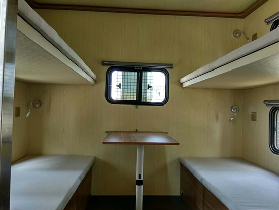 東風大型四驅越野房車滿足更多路況復雜環(huán)境使用,廂體內裝有豪華折疊床、液晶電視、儲物柜、應急燈、頂燈、頂置空調、床墊、被褥、燃油加熱器、頂護欄、爬梯、隱藏抽拉梯、專用房車門、中空玻璃、戶外燈。由保溫廂體、空氣調節(jié)系統(tǒng)、宿營設施、影音系統(tǒng)、電氣系統(tǒng)、通風換氣系統(tǒng)、洗漱和衛(wèi)生設施。整個廂體分為三個部分,住宿區(qū)、洗漱區(qū)、餐飲區(qū)。住宿區(qū)包括四個上下鋪,床頭燈,液晶電視,空調等。洗浴區(qū)包括臉臺,衛(wèi)生間,熱水器等。餐飲區(qū)包括無煙灶臺,可活動餐桌,洗菜盆等。也可以根據(jù)用戶的需要設計,可增加會議室,辦公區(qū)等。東風大型四驅越野房車內飾圖片: