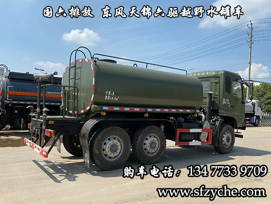 國六排放潤知星牌SCS5165GPSDFV6型六驅(qū)越野綠化噴灑車_東風(fēng)天錦六驅(qū)森林消防水罐車_六驅(qū)園林綠化灑水車主要用于城鄉(xiāng)園林綠化灑水,噴藥等;主要裝置為水罐及泵.隨底盤選裝駕駛室.罐體有效容積8.7立方米.罐體外形尺寸(長×長軸×短軸)(mm) 4200×2350×1300.側(cè)、后防護(hù)材料為Q235B,側(cè)、后防護(hù)與車架焊接連接.后部防護(hù)裝置斷面尺寸(寬×高)50×120(mm),后部防護(hù)離地高度:460mm.ABS型號/生產(chǎn)廠家:3631010-C2000/東科克諾爾商用車制動(dòng)系統(tǒng)(十堰)有限公司。東風(fēng)天錦六驅(qū)越野綠化灑水車上裝配置:罐體采用優(yōu)質(zhì)碳鋼QB235板材,板材厚度4mm,罐體容積8.7立方,安裝取力器,60-90威龍大功率水泵可泵進(jìn)泵出,后置工作平臺帶水炮射程25米,消防栓接口左右各一個(gè),選裝駕駛室頂部安裝長條警燈帶喊話器,全車顏色軍綠,兩側(cè)噴涂白色森林消防字樣等。
