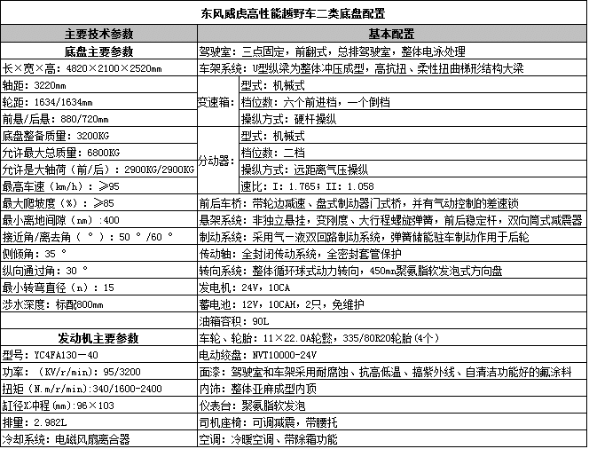 相關車型| 東風牌EQ2070FQ型越野汽車產品主要技術資料 | |||
