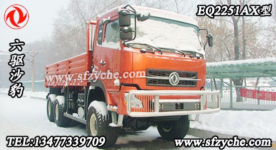 東風(fēng)牌EQ2251AX型沙漠越野車配置:采用東風(fēng)新款D310平頂單臥駕駛室,發(fā)動(dòng)機(jī):康明斯375馬力國(guó)四發(fā)動(dòng)機(jī) 直列增壓中冷六缸水冷柴油機(jī) ISLe375 40;北方奔馳同步器型9擋箱 9T-160 Φ430mm,膜片彈簧拉式離合器,7T前橋,10T 重慶大江雙級(jí)減速雙后橋 14.00-20輪胎 (選裝20-20 沙漠胎)軸距3800+1400 鋼板彈簧片數(shù)9/10,油箱350L,貨箱尺寸:5720×2294×800mm,整車外形尺寸:8470×2500,2700×3520,動(dòng)力轉(zhuǎn)向。如需了解更多東風(fēng)六驅(qū)沙漠車圖片,東風(fēng)六驅(qū)沙漠車價(jià)格,東風(fēng)六驅(qū)沙漠車參數(shù),請(qǐng)立即撥打銷售熱線:13477339709 李經(jīng)理 0722-7053060 業(yè)務(wù)QQ:530233927,東風(fēng)越野卡車網(wǎng)址:www.shabbychicwny.com