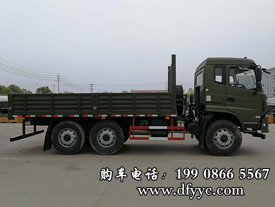 東風(fēng)新款國五六驅(qū)越野貨車配置簡介:采用東風(fēng)EQ2220GD5DJ型越野汽車底盤,東風(fēng)D530老款駕駛室/D913豪華駕駛室可供選裝,6×6驅(qū)動,康明斯ISB190 50國五發(fā)動機,六檔變速箱,標配315/80R22.5 20PR可換為12.5R20真空越野輪胎,軸距3500+1250mm,加厚雙層大梁,電動玻璃,方向助力,斷氣剎,ABS,備胎一套,大箱長度5米,墻板高度600mm。