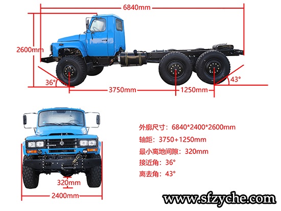 東風尖頭六驅(qū)EQ245沙漠車配置: