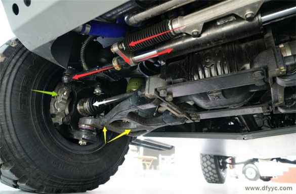 藍色箭頭:左前轉(zhuǎn)向拉桿至左前轉(zhuǎn)向節(jié)